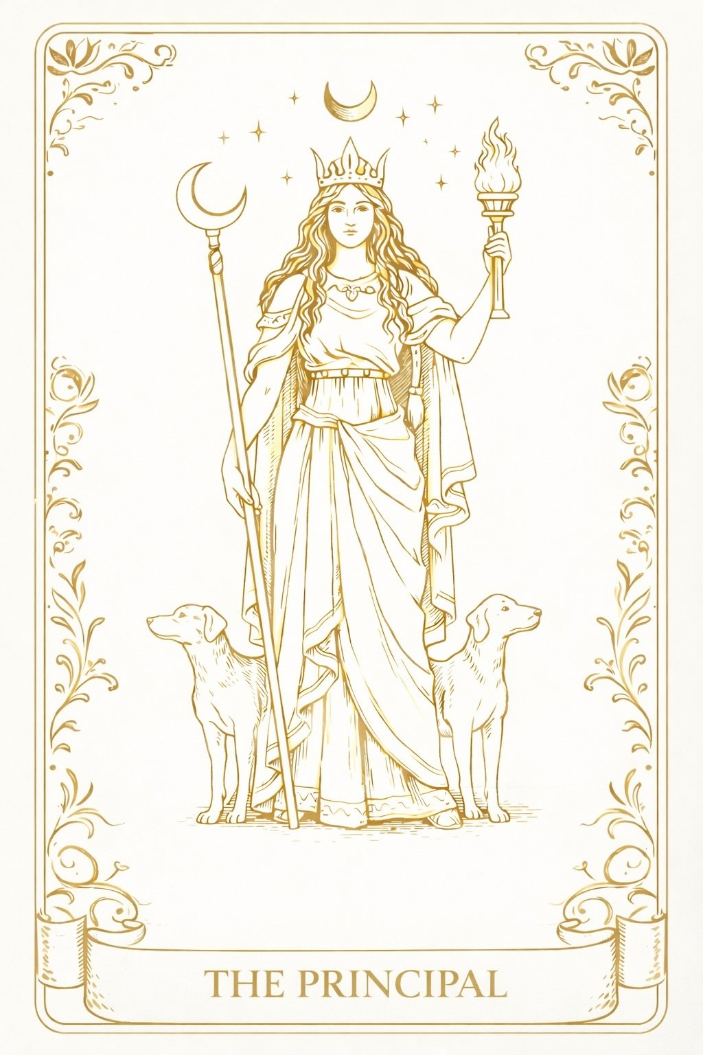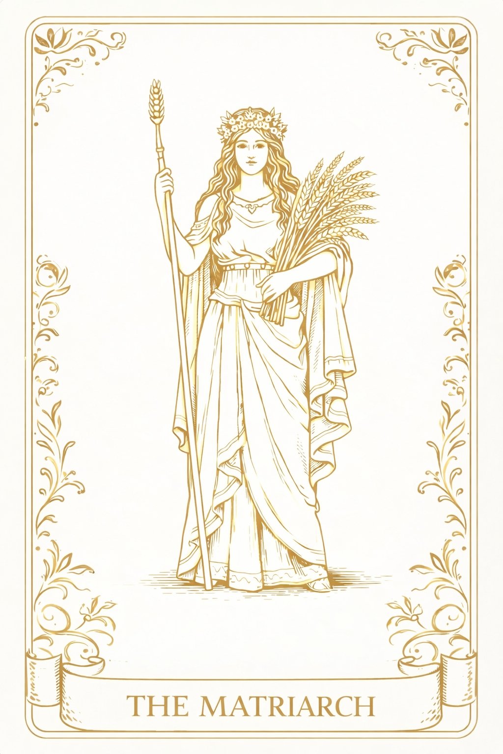 The keeper of the deeper order. She nurtures through structure, holds space through sovereignty, and understands that true care is inseparable from uncompromising authority. Hers is the ancient feminine power.